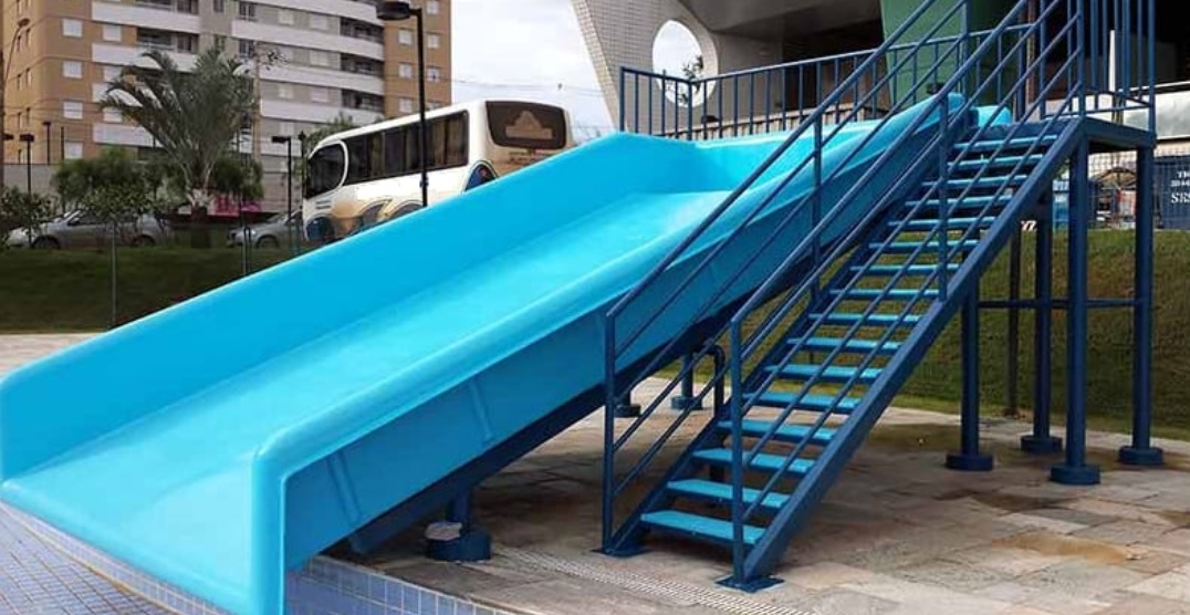 Produto fabricado em Fibra de Vidro e Tubos de Aço Galvanizados a Fogo.